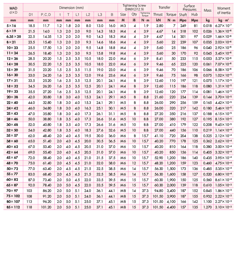 - MAD is available for the shaft with a narrow diameter