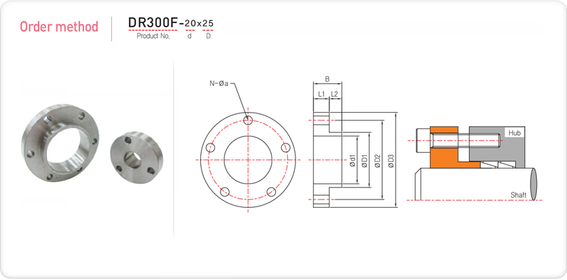 - d : 40mm Below : Shaft : h6, Hub : H7