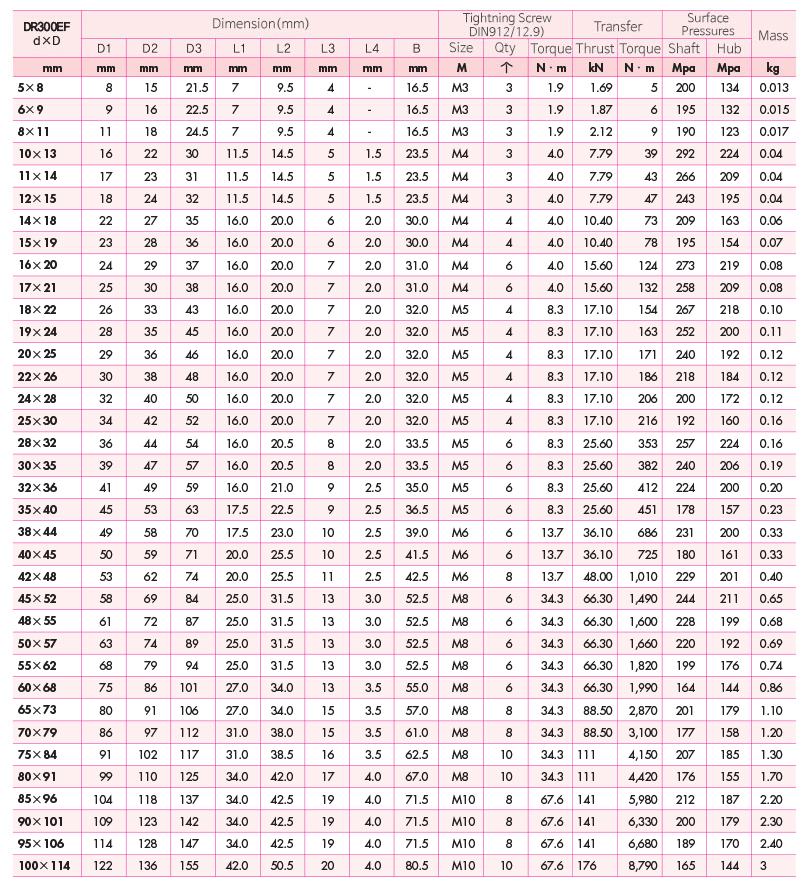 - the product has the same inner and outer diameters with DR300C.
